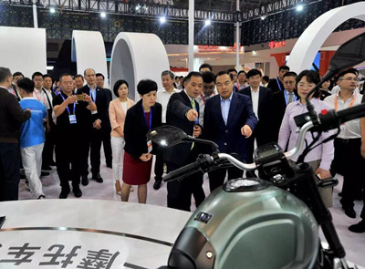 5月18日上午,市委副书记、市长唐良智等市领导到重庆高新区·九龙坡区展馆巡馆,在九龙坡区刘小强区长陪同下参观了尊龙凯时人生就是博z6com通用展台,唐市长被尊龙凯时人生就是博z6com通用所展出的“VOGE无极”摩托车所吸引,对造型复古又拥有时尚外观的中量级先锋复古机车“无极300AC”产生了浓厚兴趣,一边端详复古机车,一边询问车辆性能、售价、销售等情况,时而手握车把、触摸油箱、皮座等,对“VOGE无极”摩托车给予充分肯定。