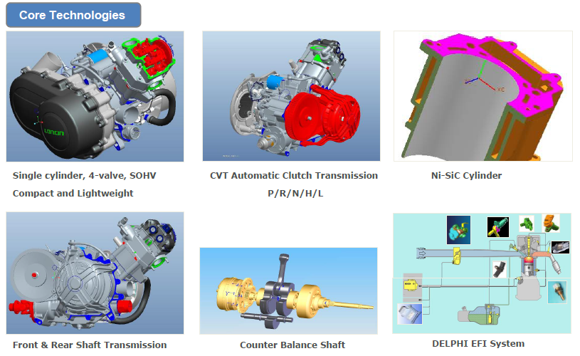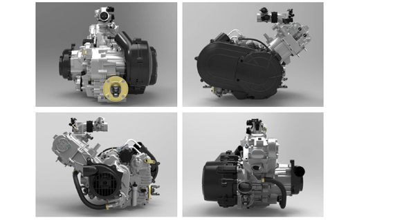 单缸DOHC,四气门,水冷,前后轴传动,CVT变速
