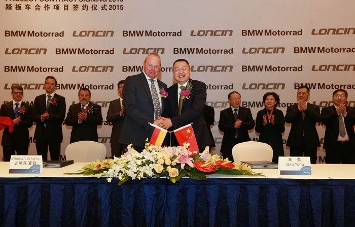 On March 12, 2015, LONCIN Motor Co., Ltd(hereinafter referred to as Loncin) and the German BMW (hereinafter referred to as BMW) signed a new agreement. According to this new agreement, Loncin will undertake the manufacturing of 350CC large displacement water-cooled scooters and the engines for BMW. The product will be made completely in accordance with BMW's standard and Euro IV requirement as well. It will be sold in BMW's global markets(including China market) and the expected annual output is around 15,000 units.