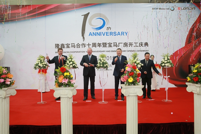 In April 23, 2015, LONCIN and BMW held their tenth anniversary celebration ceremony and the ribbon cutting for the successful completion of the BMW factory at the LONCIN plant C. Mr.Gao Yong, President of LONCIN Motor Co., Ltd and vice president Mr. Wen Xiaogang met with Mr.Stephen Challer, President of BMW and vice chairman of the board of supervisors Shao He, attended the tenth anniversary celebration ceremony and ribbon cutting ceremony.