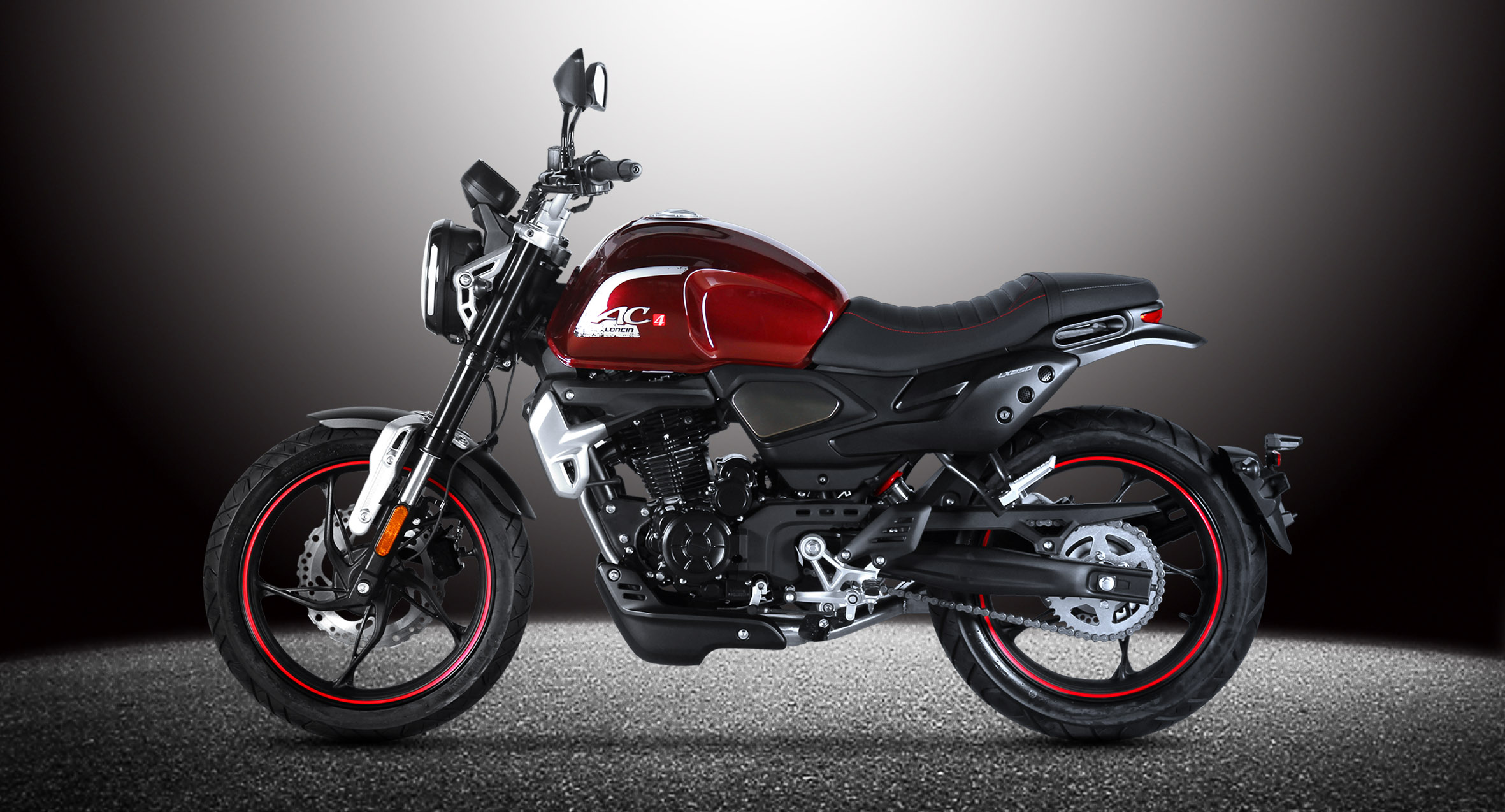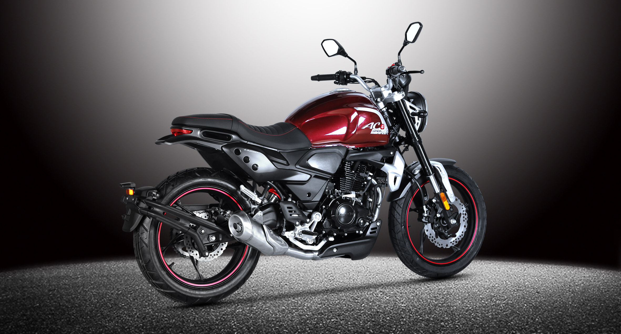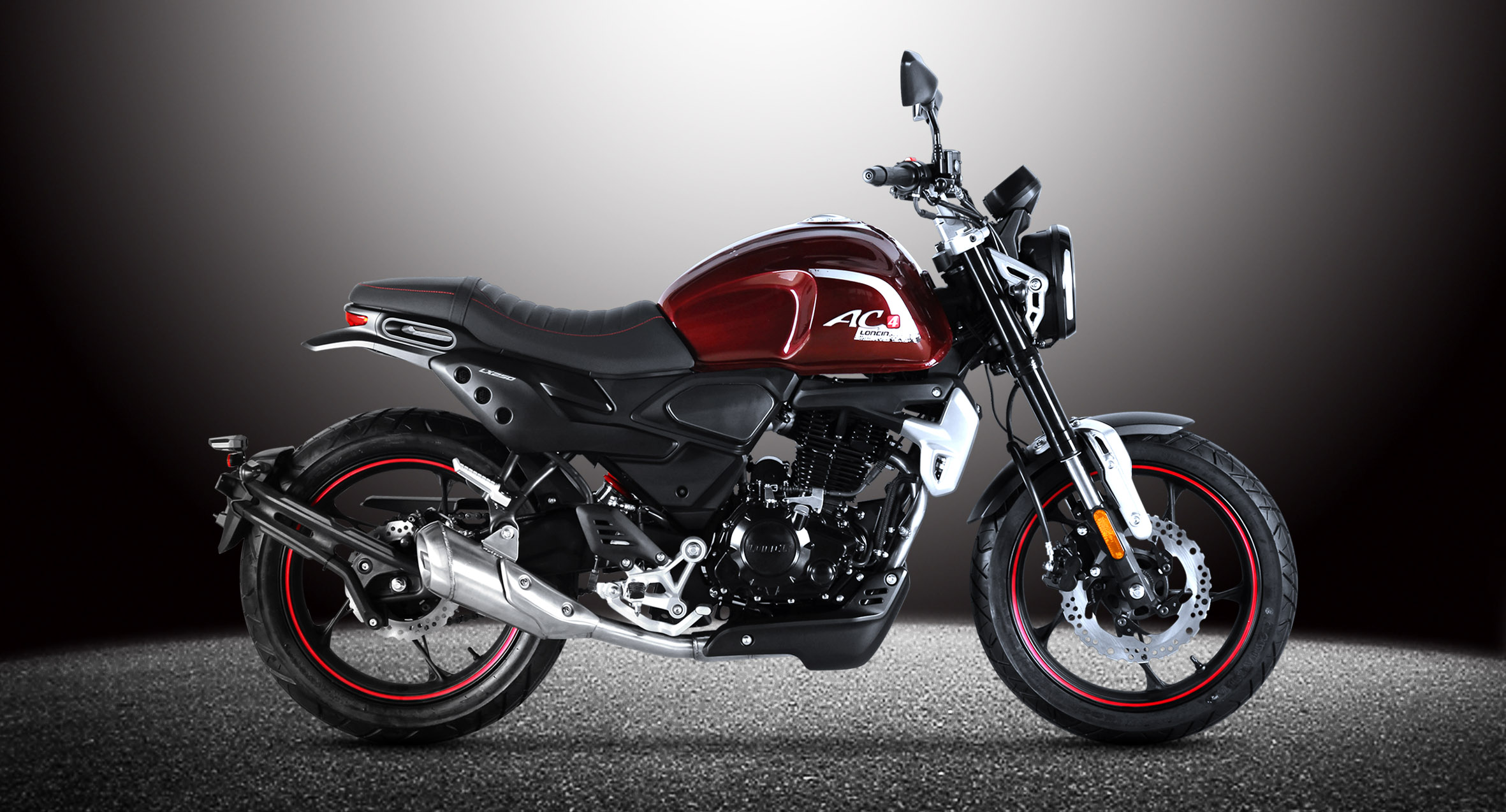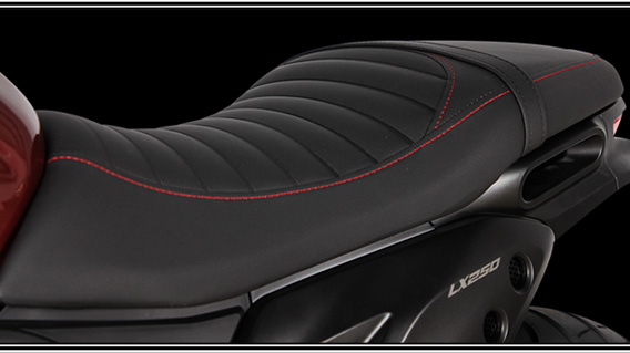 RE250 Oil-cooled engine, E-start only, 6-speed, Alloy wheel, Tubeless tyre, Fr. & Rr. disk brake, Centre placed absorber, LED headlight with LED decorative light, LED taillight, LED turn light, Digital meter,  Stainless steel muffler,  Anti-slip seat, Half chain case, separate rear fender, Special rear fork.
