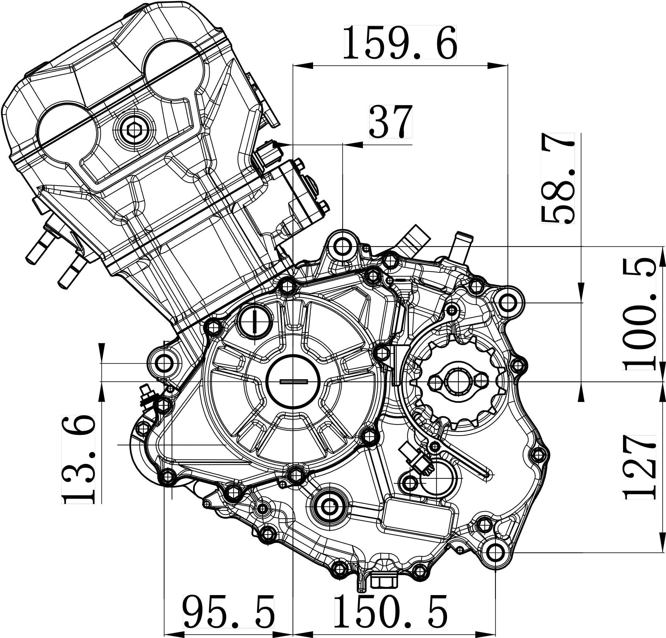 Cylinder tilt 30° design, compact structure, can be used in the street bike and CUB, practicability, versatility.