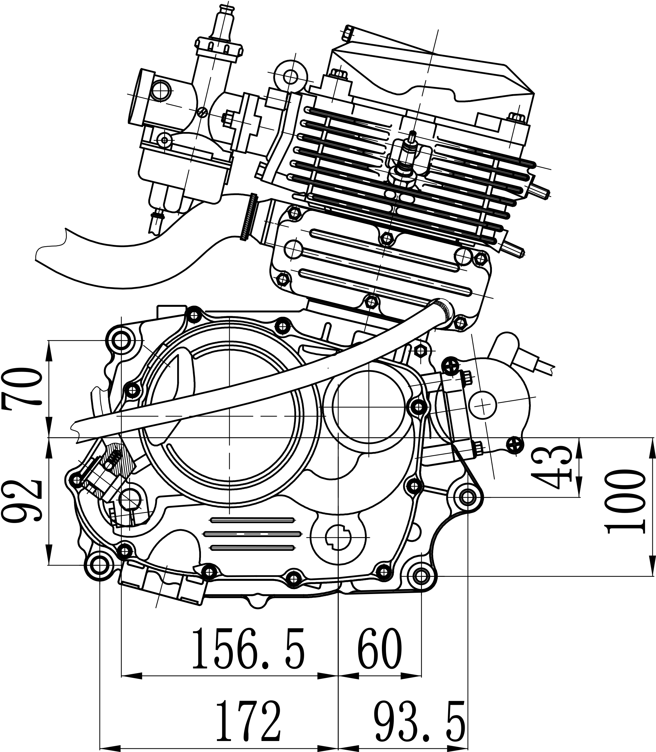 ● 单缸、四冲程、沸腾冷却、电启动发动机