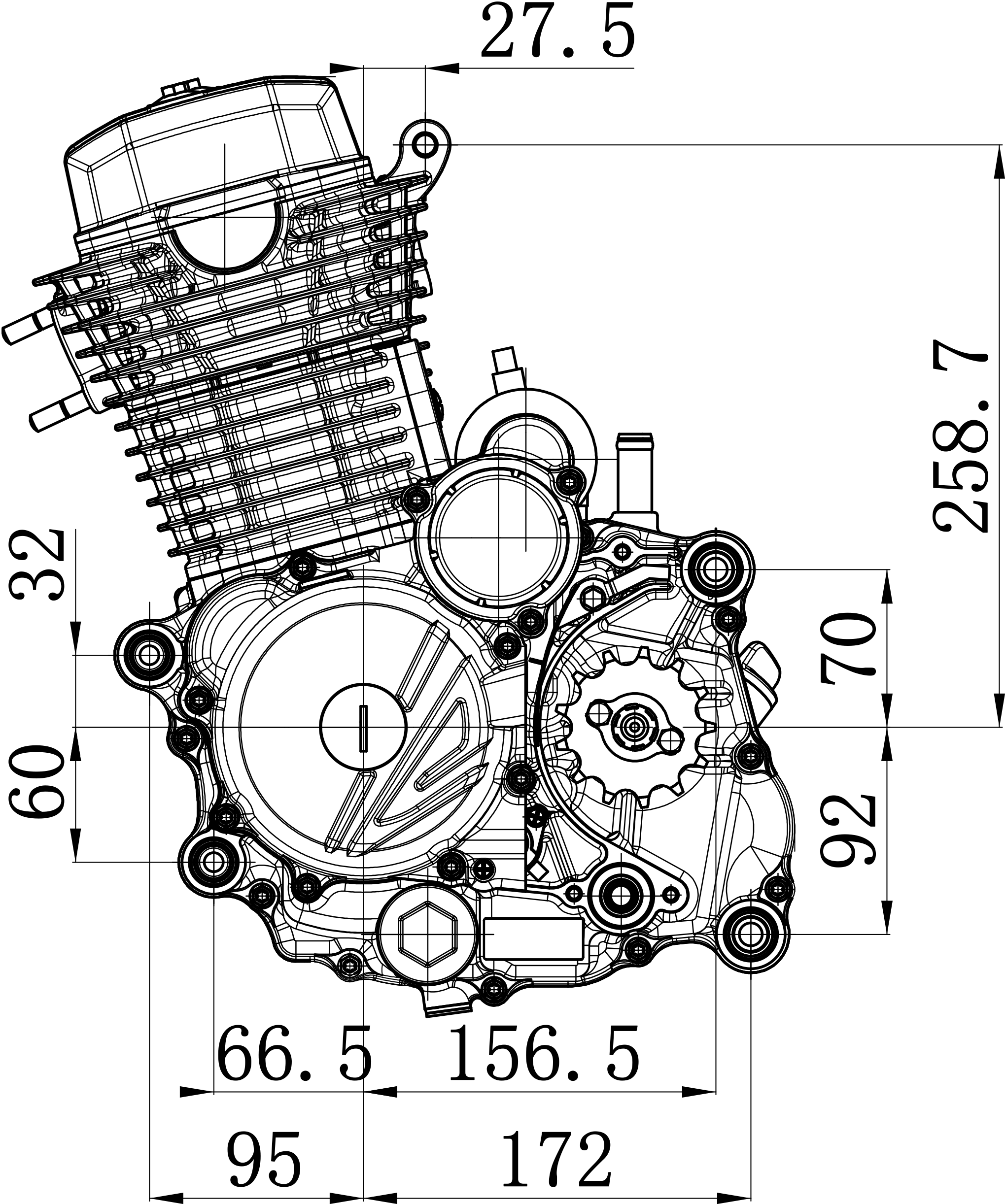 ● With single cylinder four valves, irregular combustion chamber, SOHC structure, low intake resistance, high inflation efficiency, strong power.