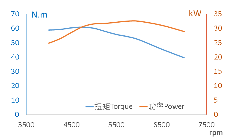 ● 单缸、四气门、单顶置凸轮轴结构,减小体积,减轻重量